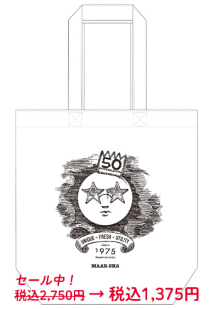 星のサングラスとビーズの王冠でキメたマールちゃんの、モノクロでインパクトあるデザインのキャンバス地のトートバッグです。