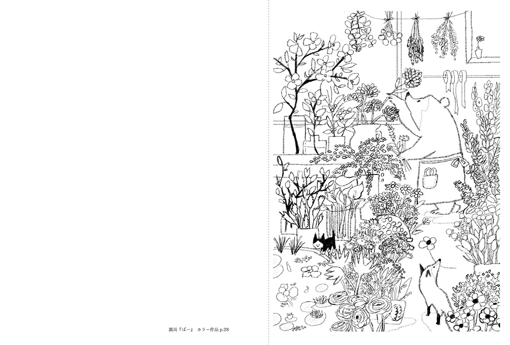 塗りやすい小さな絵から、塗りごたえのある大きな絵まで、盛りだくさん。はみ出しても気にせずのびのびと、お好きな画材で動物&草花たちに素敵な彩りを加えてみてください。