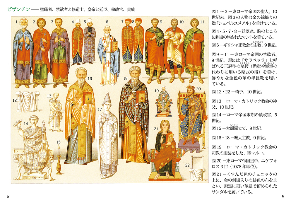 素朴な庶民の衣服から、王侯貴族、聖職者のきらびやかな衣装、騎士の甲冑等、中世ヨーロッパの様々な美しい服装をどうぞお楽しみください。